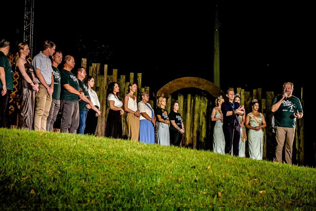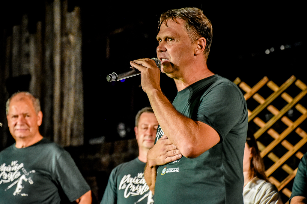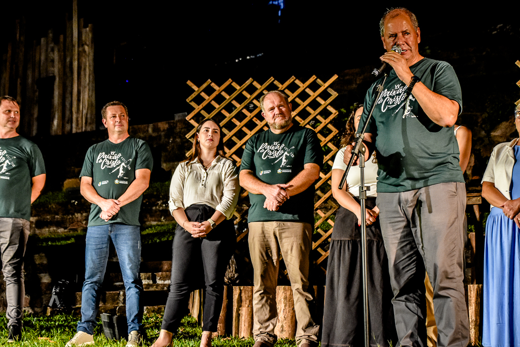O Secretário da Cultura, Charles Porsche, usou a palavra para expressar gratidão a todos que tornaram o espetáculo possível. Em especial, homenageou os 55 atores que, desde janeiro, abriram mão de parte de seus afazeres para se dedicar aos ensaios — meses de preparação que resultaram em uma apresentação à altura da grandiosidade da história encenada. Porsche também agradeceu às dezenas de voluntários que trabalharam incansavelmente na organização do evento, cuidando de cada detalhe, dos bastidores ao atendimento ao público. "São essas pessoas que fazem a Paixão de Cristo acontecer", ressaltou.