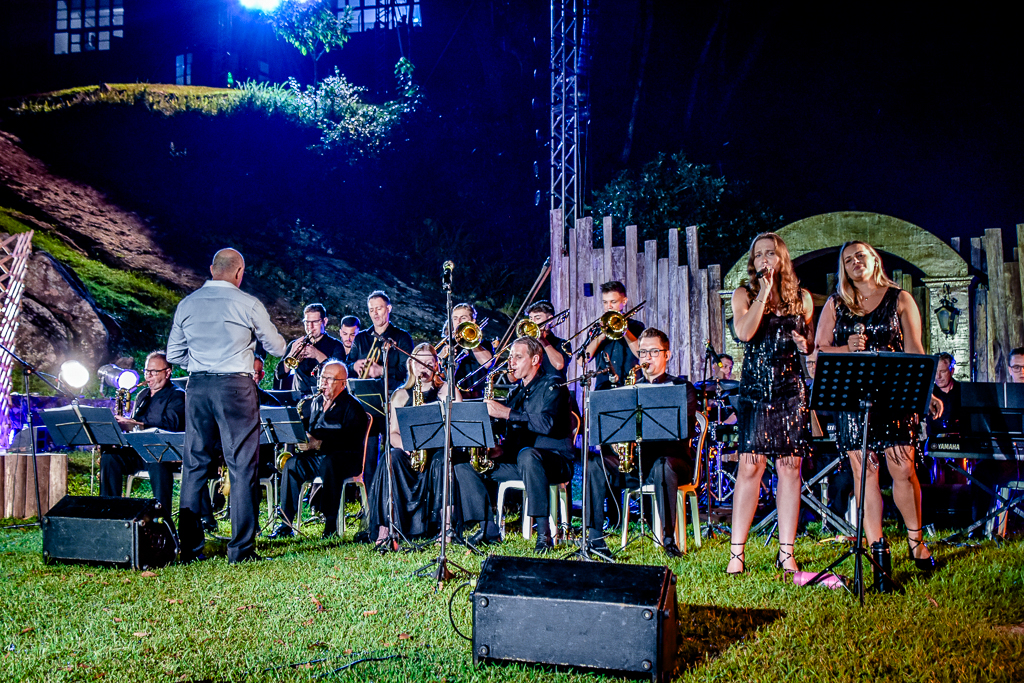 Antes mesmo de as luzes do palco se acenderem, a emoção já tomava conta do ambiente. As Orquestras Jovem, Municipal de Imigrante e Municipal de Colinas abriram a noite com uma atmosfera de contemplação e reverência, preparando o público para o que estava por vir.