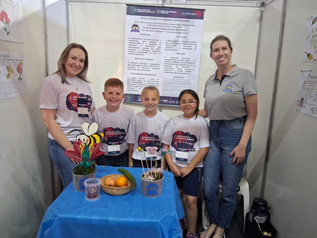 Escola Municipal de Ensino Fundamental Santo Antônio participou da Feira de Ciências da Univates, realizada nos dias 23 e 24 de outubro, com o trabalho “Aliados da natureza: polinizadores”. A pesquisa foi desenvolvida pelos alunos do 4º ano, Esther Vitória Gonçalves dos Santos, Murilo Augusto Bode e Pâmela Branchi, sob orientação da professora Cátia Eloísa Brackmann.